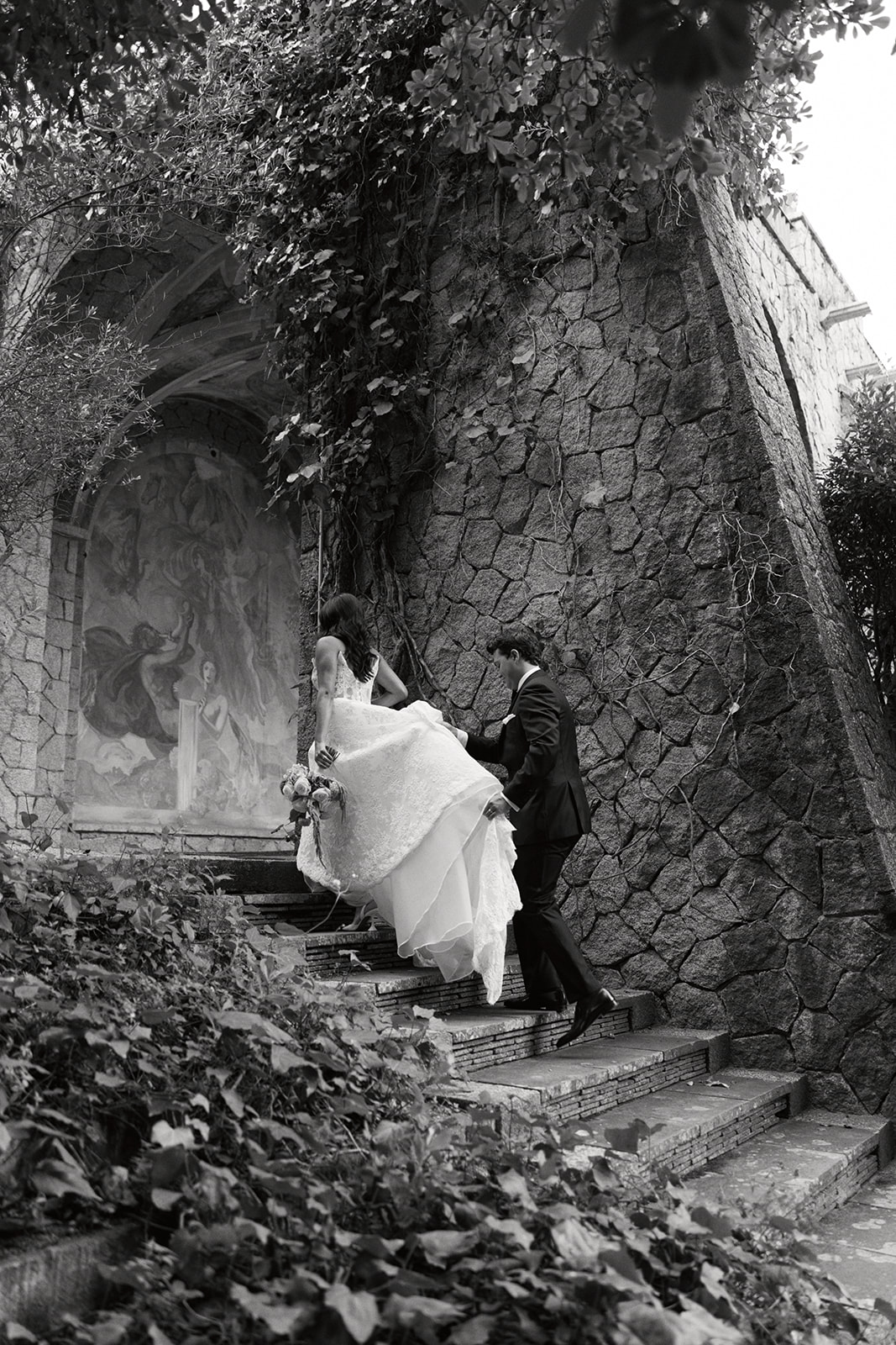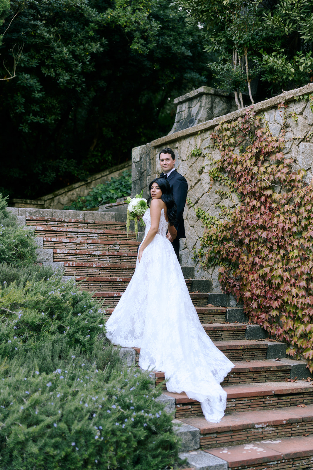 Bridget and Trevor came all the way from San Francisco to celebrate their wedding in the spectacular Bell Recó venue. Surrounded by lush gardens, historical architecture, and their closest family and friends, the atmosphere was a perfect blend of timeless elegance and modern joy.