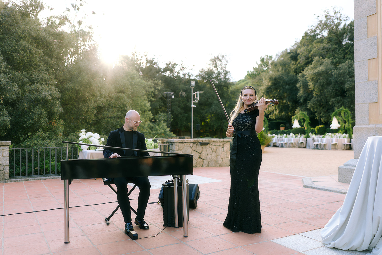 After the “I do’s”, guests enjoyed a cocktail reception in front of the villa. With a live piano and violin duo by Tu Música Events, the ambiance was filled with a magical charm, setting the tone for the evening ahead.